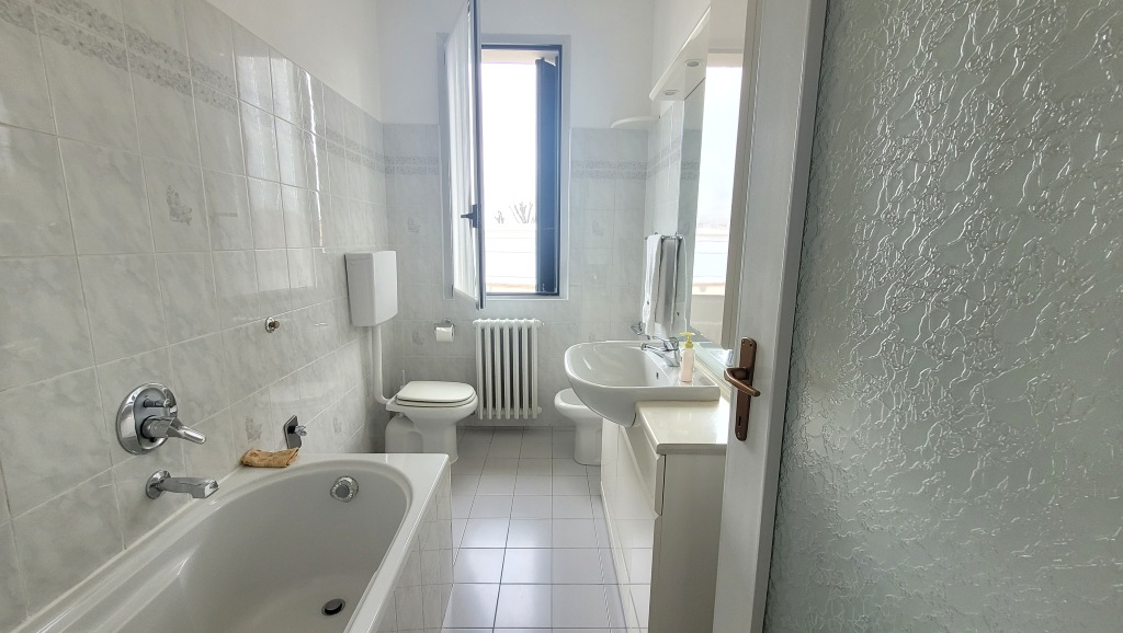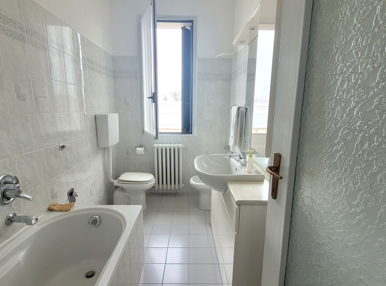 Spaziosa camera matrimoniale e bagno finestrato con vasca.